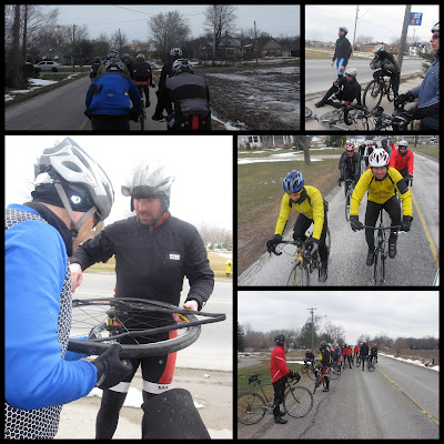 My phone alarm went off at 7:30 am or should I say 8:30 am on Sunday! I forgot about the time change, good thing it was the phone alarm that I set. I don't like the idea of losing an hour but I do like the idea of an extra hour of daylight! I got out of bed, let the dog out, made coffee, made breakfast, got ready, packed my bike bag, dropped the kids of at my parents and arrived at Kim's (15 min. from home) by 10:15 am! We car pooled to the meeting parking lot for the bikeSABBATH WRCS ride.